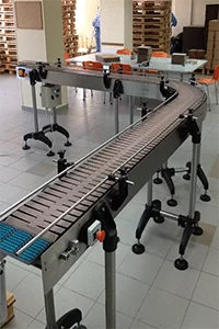 Този тип транспортьори дават неограничени възможности за конфигурации и оформление. Подходящи са за транспортиране на кутии, бутилки и различни опаковани продукти. Могат да се изработват в различни дължини и широчини.